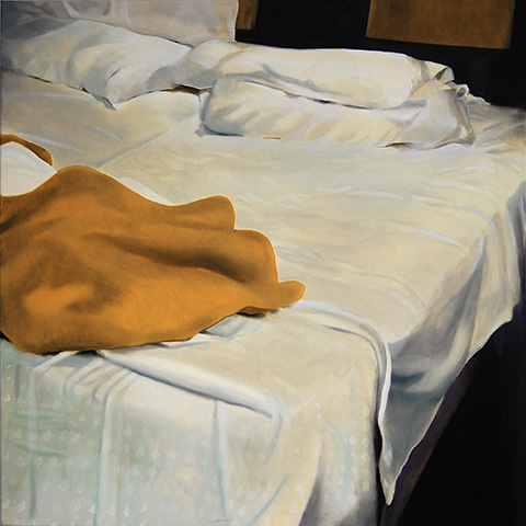 Hier hat soeben etwas stattgefunden, suggerieren die aufreizenden Arrangements von Kissen und Laken. Wie beiläufig wird dabei das Thema der Spannung zwischen Pornografie und Erotik mit verhandelt. Was setzt mehr in Gang? Das Zeigen oder das Verbergen?
