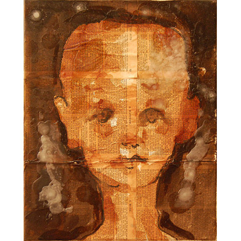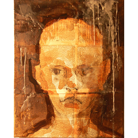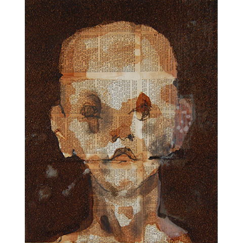 Tee, Kreide, Wachs, Torfstaub auf Bibelseiten auf Leinwand